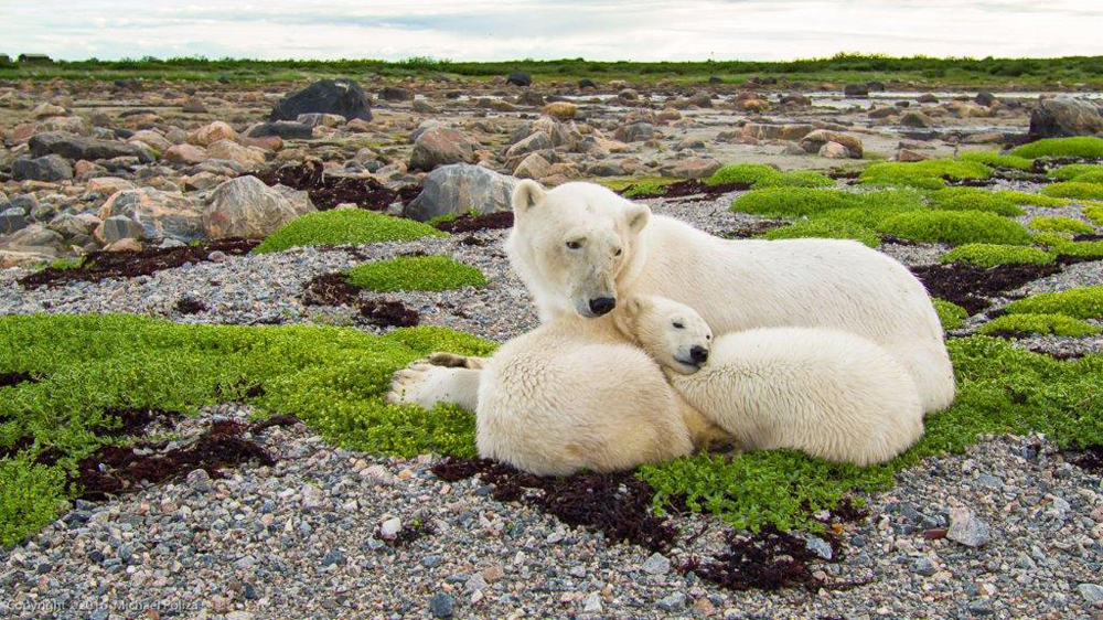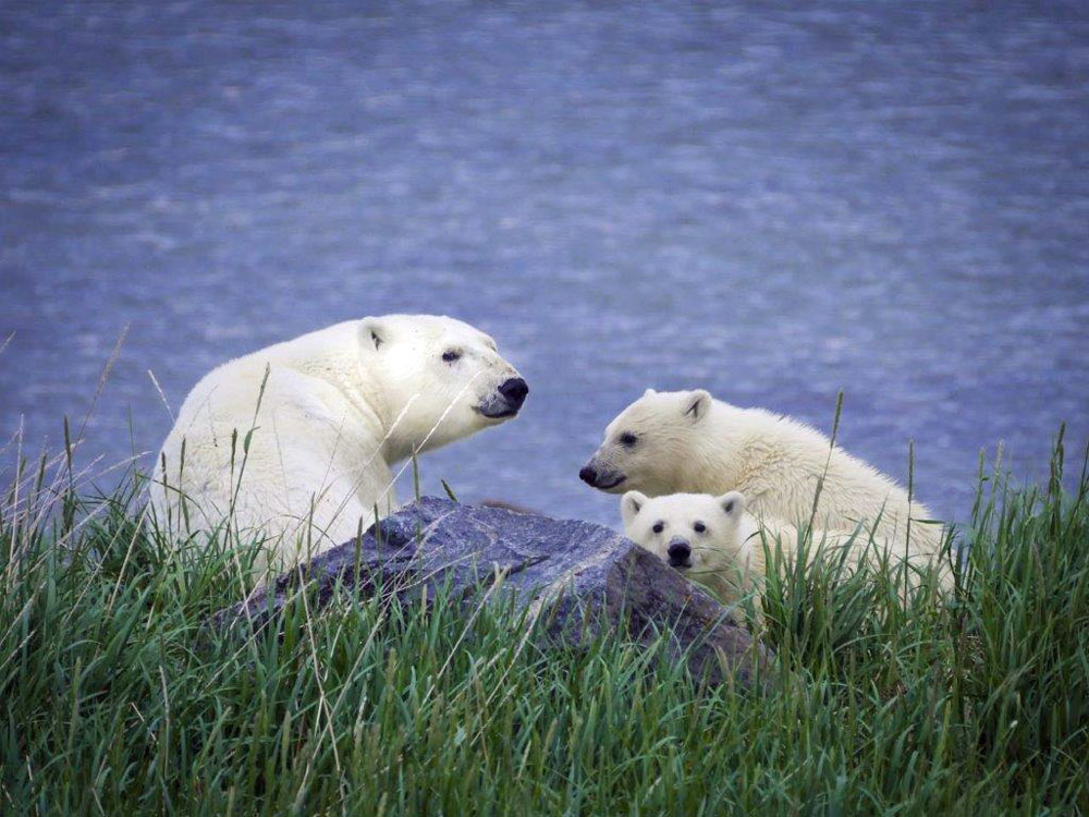 - Mom and cubs on the shore at Seal River. Jad Davenport.