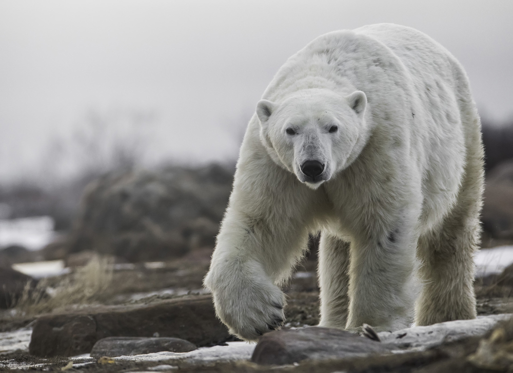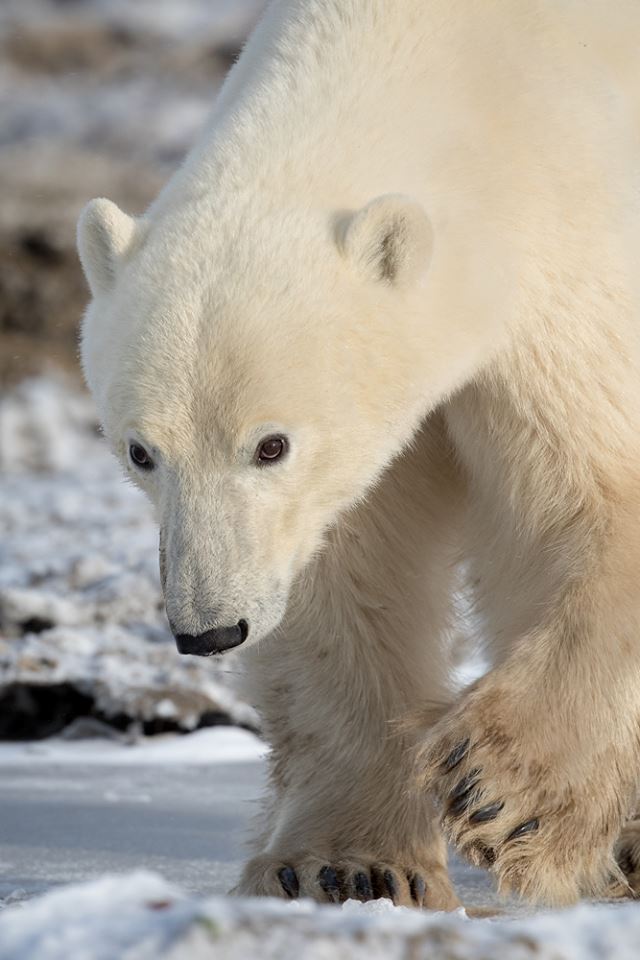 - Polar bear walks towards us at Seal River. Robert Postma.