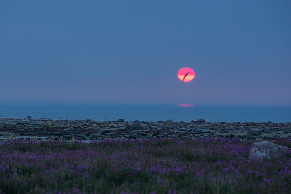 - Sun sets on wolf at Seal River. Ian Johnson.