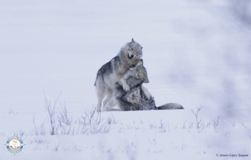- Playful wolves at Nanuk Polar Bear Lodge. Steve Schellenberg.
