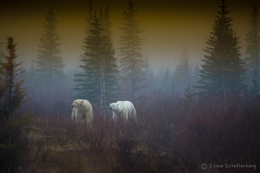 - Polar bears in the mist at Nanuk. Steve Schellenberg.