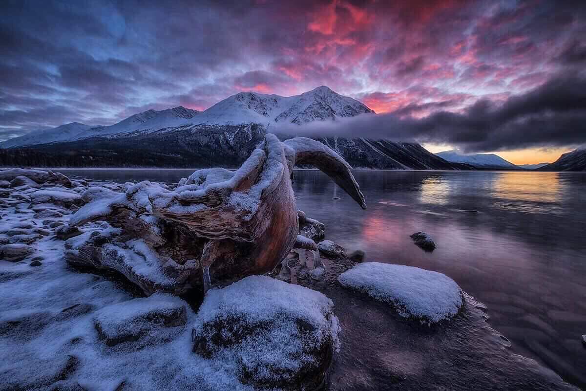 - Icescape at sunset. Dymond Lake Ecolodge.